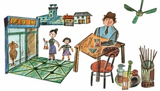 父親工作的單位在城裡。他白天是「城內人」,熟悉的路徑,看到的熱鬧場景,也許都想帶給妻女。即使周末去城裡只是去吃家常的小吃、買打打牙祭的零食。他記得我們的生日,下班時會從城裡拎一個蛋糕回來,蠟燭從我們看相片才有記憶的一根、兩根,一直到學齡前。總覺得「從城裡」下班回來的父親公事包似乎會變出什麼魔法。